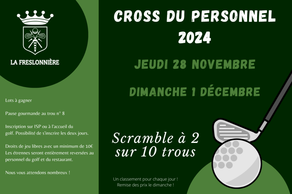 Comme chaque année, nous organisons notre Cross du personnel sur 10 trous modifiés en scramble à 2 !